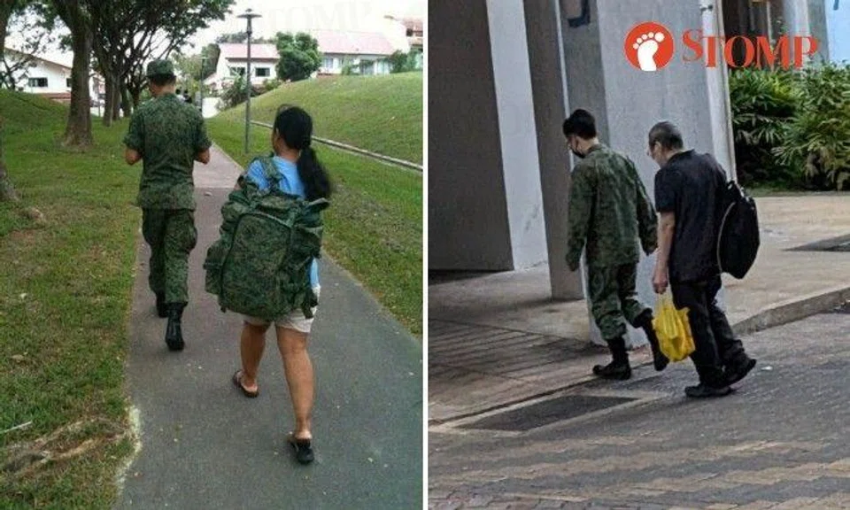 "Ever since circuit-breaker restrictions were lifted in Singapore, I've been seeing this man in army uniform with his father, who carries his bag," said the Stomper.