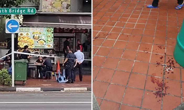 A fight broke out among several intoxicated men outside a coffee shop on South Bridge Road, leaving one of them with a head injury after being struck with a beer bottle.