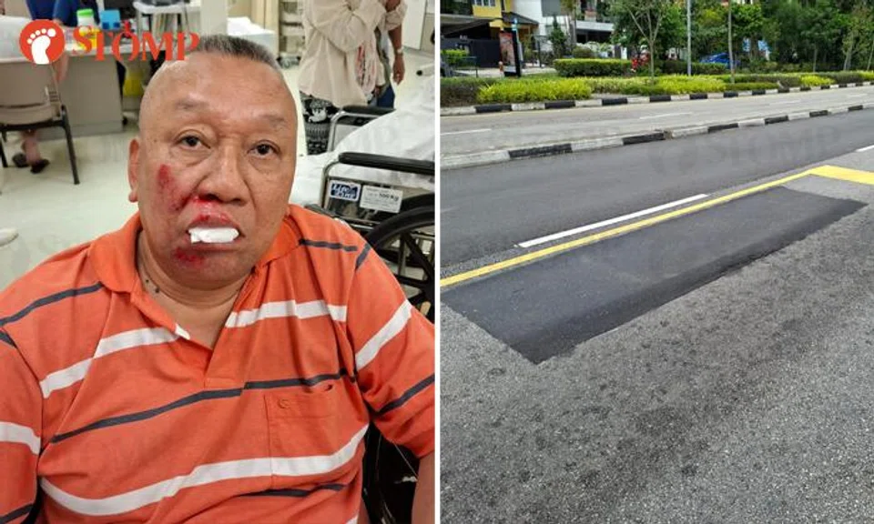 "While waiting for an ambulance, a lady informed me that her daughter also had a fall the day before due to this unseen black hump in the middle of the road," recounted Chong, who was taken to Changi General Hospital.
