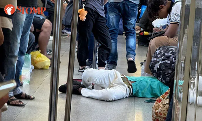 A Stomper witnessed the unusual scene and shared a photo and a video of the man sprawled on the floor with his bag covering his face taken on Dec 8 at about 5.52pm.