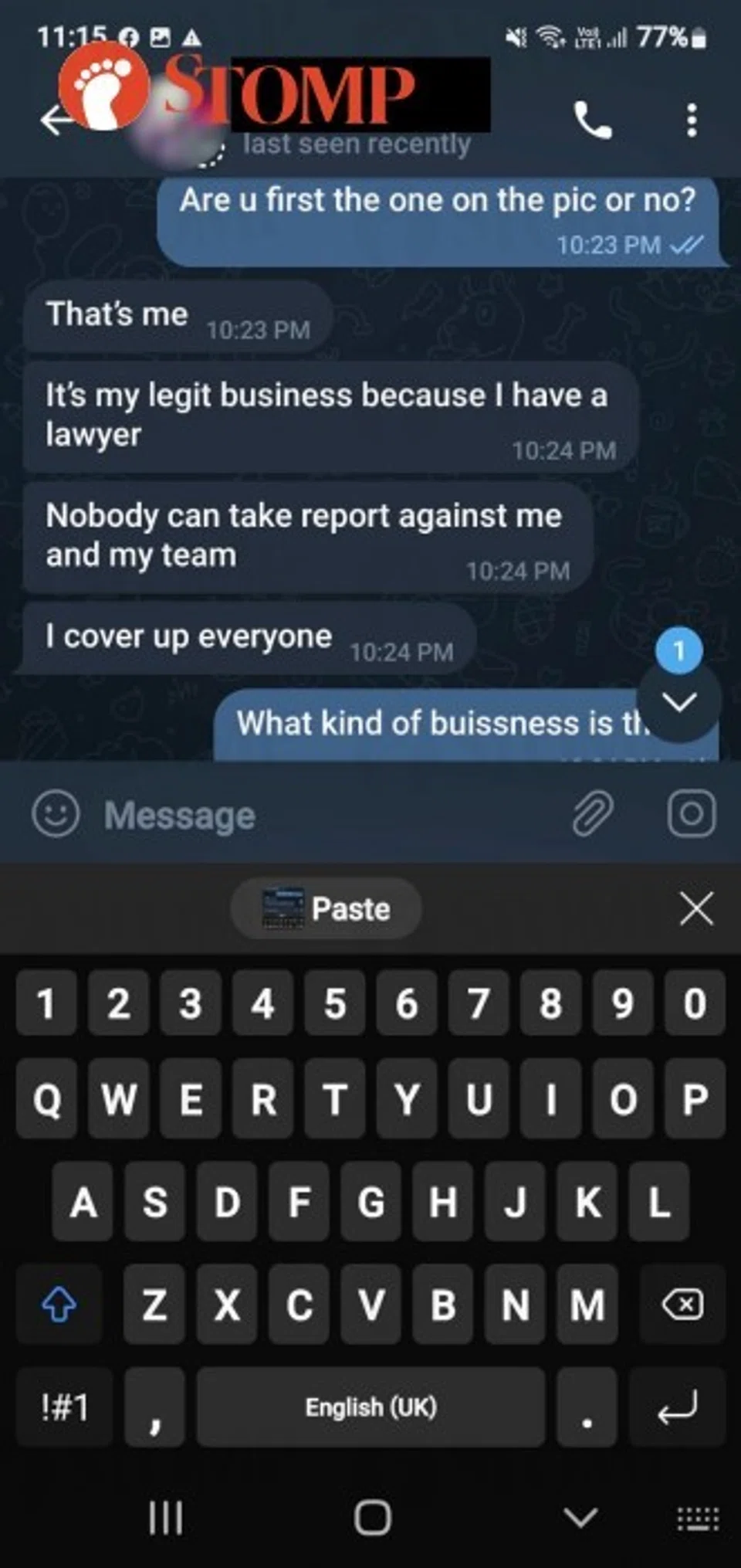 When he brought up the US$3,000 again, she said that with this 'business', he "will make more than your $3k within a week".