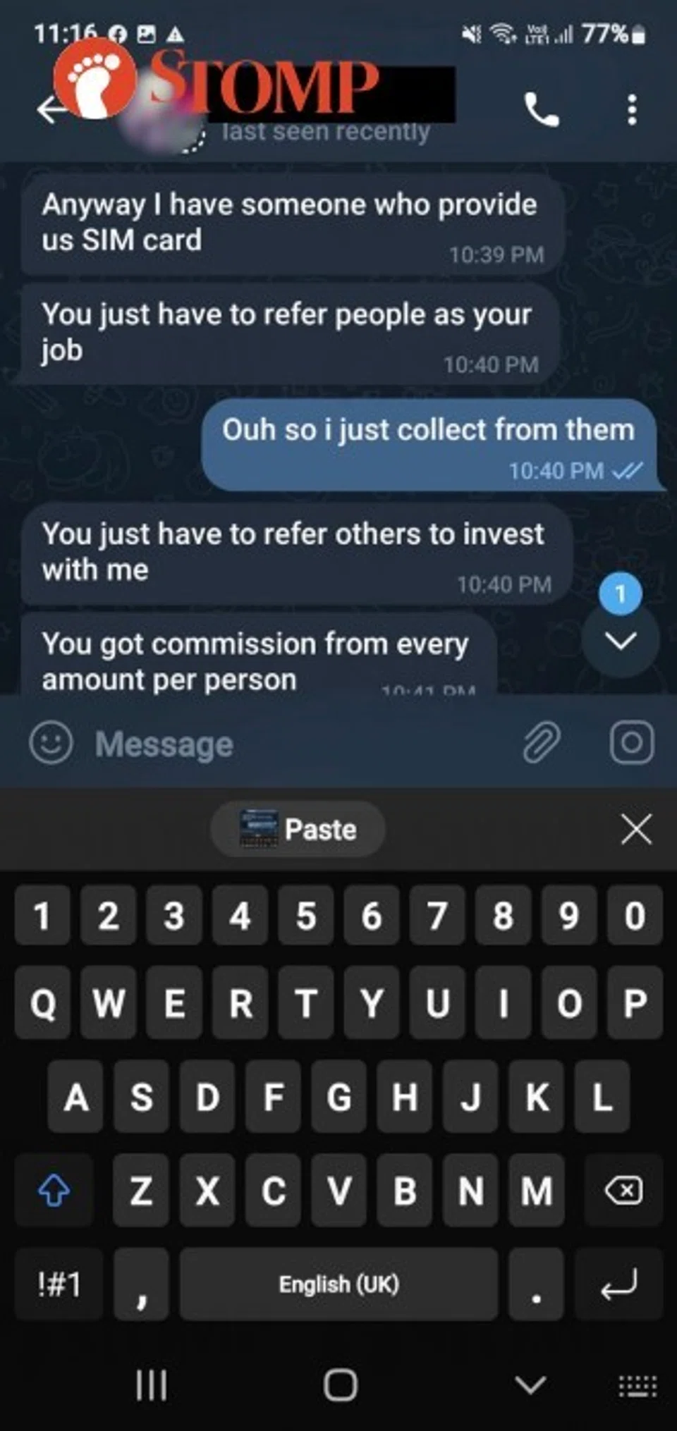 Man loses US$3k to investment scam, then receives texts from scammer asking him to join her team