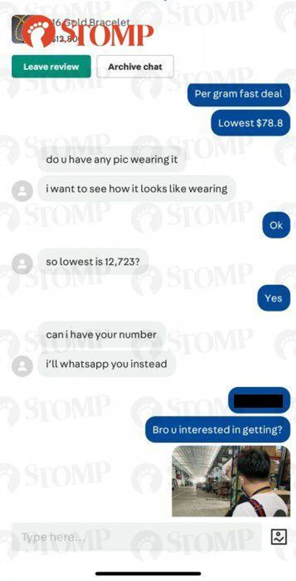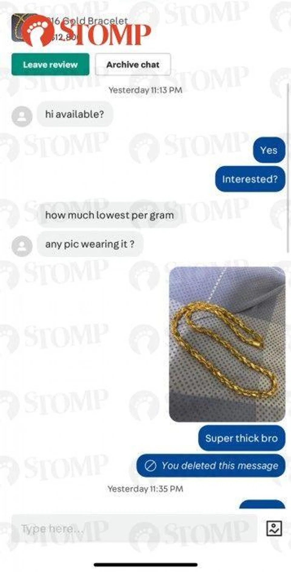 According to screenshots shared by Kenneth, the buyer had asked about the chain's authenticity and tried to negotiate the price.