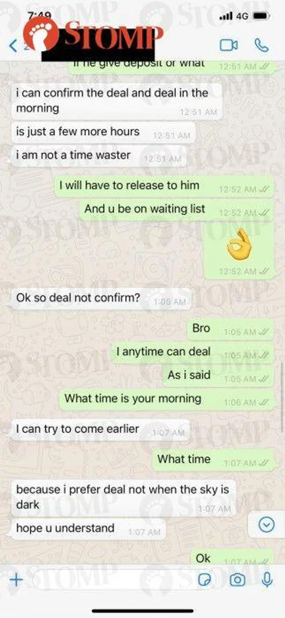 The Stomper added: "He also said he had to work, preferred to deal 'not when the sky is dark' and would travel down to me, so I agreed."