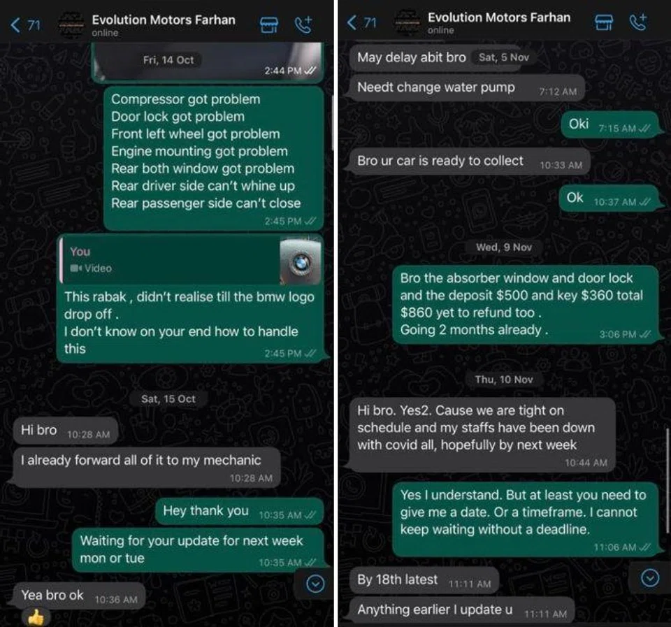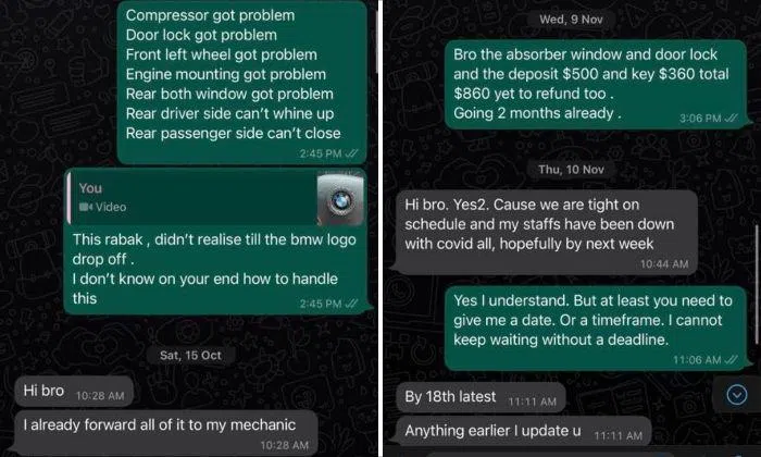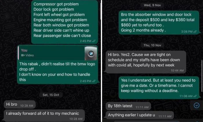 He voiced his unhappiness at the situation, but said the dealership kept attributing Covid-19, manpower and supplier issues to the delays in fixing the defects.