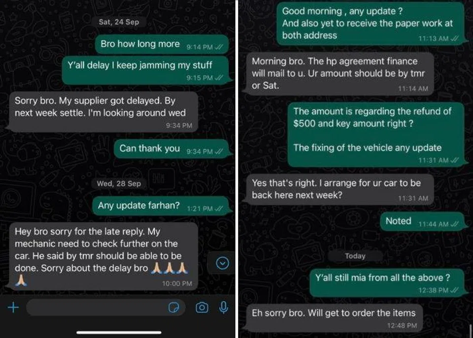 Posting on the Complaint Singapore Facebook group on Dec 5, Dappy Tan said he bought the vehicle from Evolution Motors on Sept 11, but collected the car only on Sept 29 because of several delays.