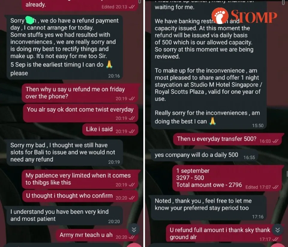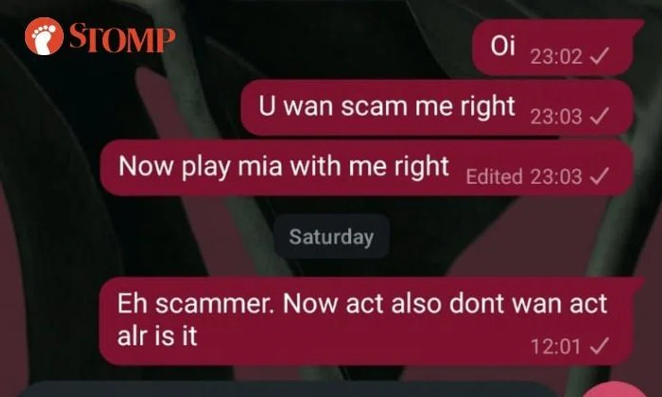 That was when the Stomper concluded that the travel agent was a scammer, and had since made a police report.