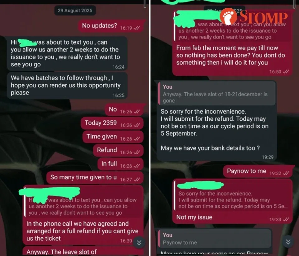 "We kept asking for updates and he said allotment tickets have different processes," recounted the Stomper, who decided to ask for a refund.