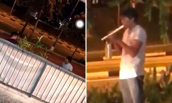 Man plays recorder in front of police officers after fighting with guy wielding potted plant at Hougang
