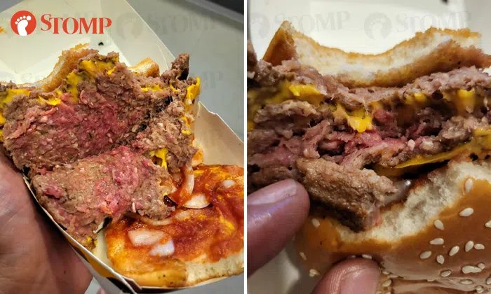 Photos that Bryan shared with Stomp show how his beef patty appeared to be pinkish and undercooked.