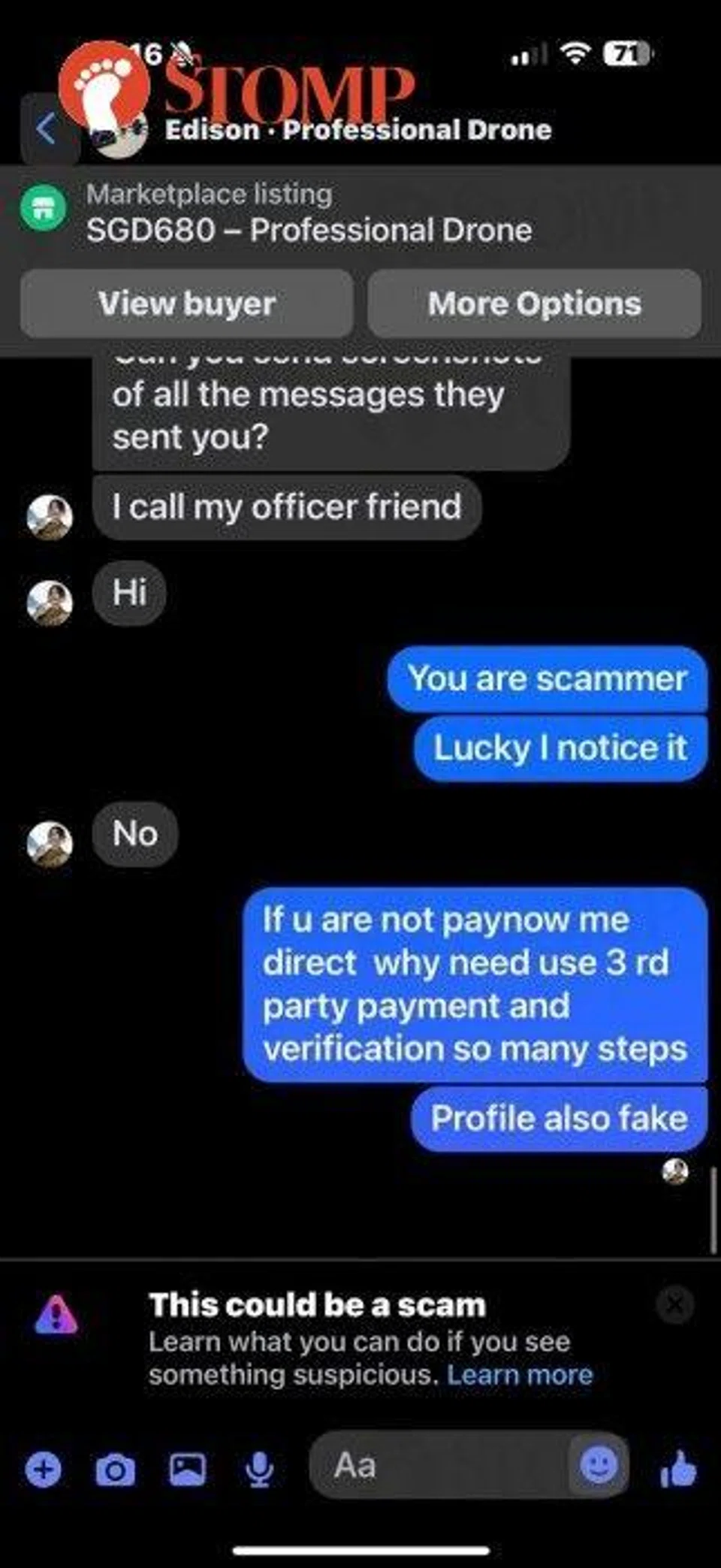 Stomper Leong received an offer from a Facebook user who was interested in his listing of a professional drone.
