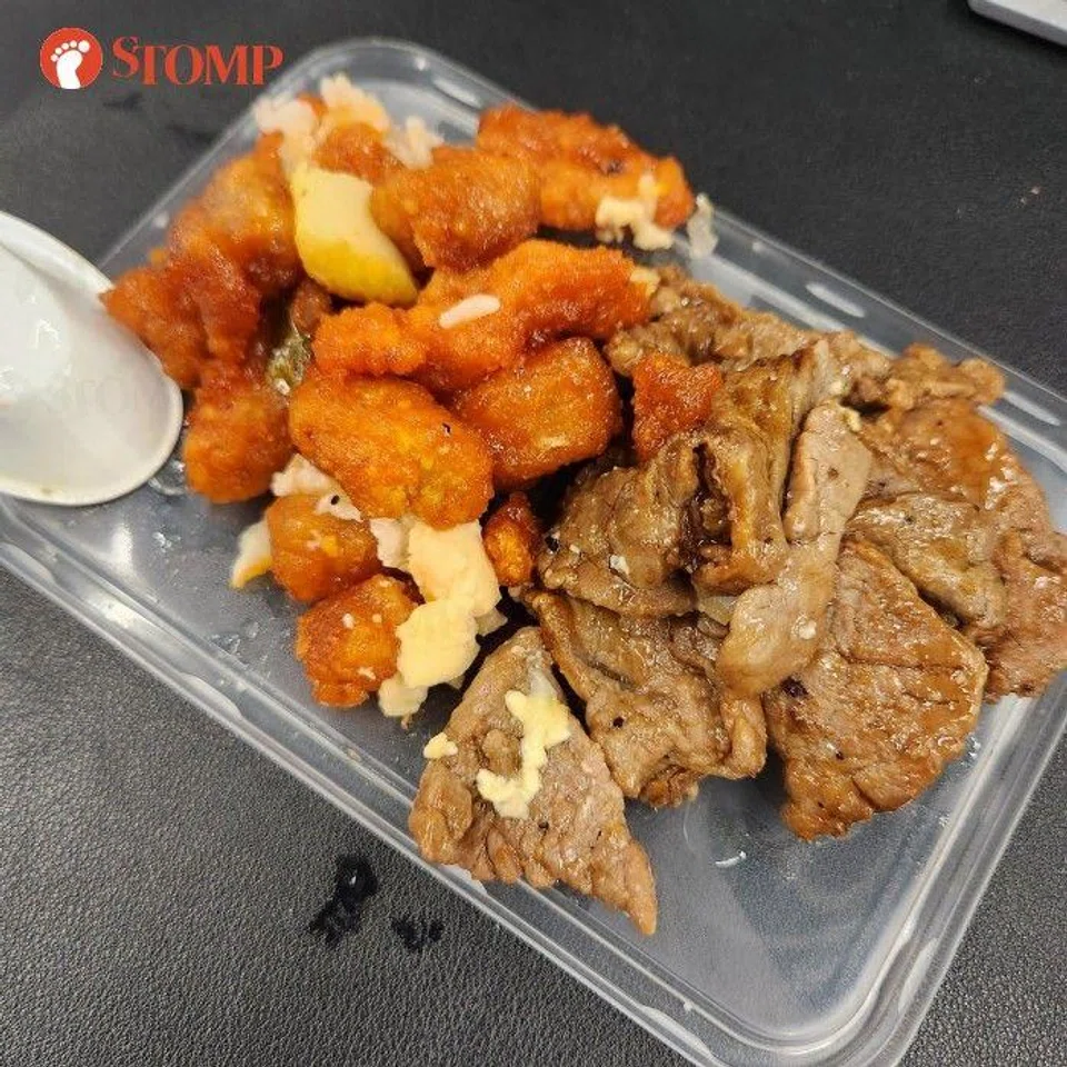 However, the customer told Stomp that the four dishes he ordered were tofu, egg, sweet & sour pork, and beef.