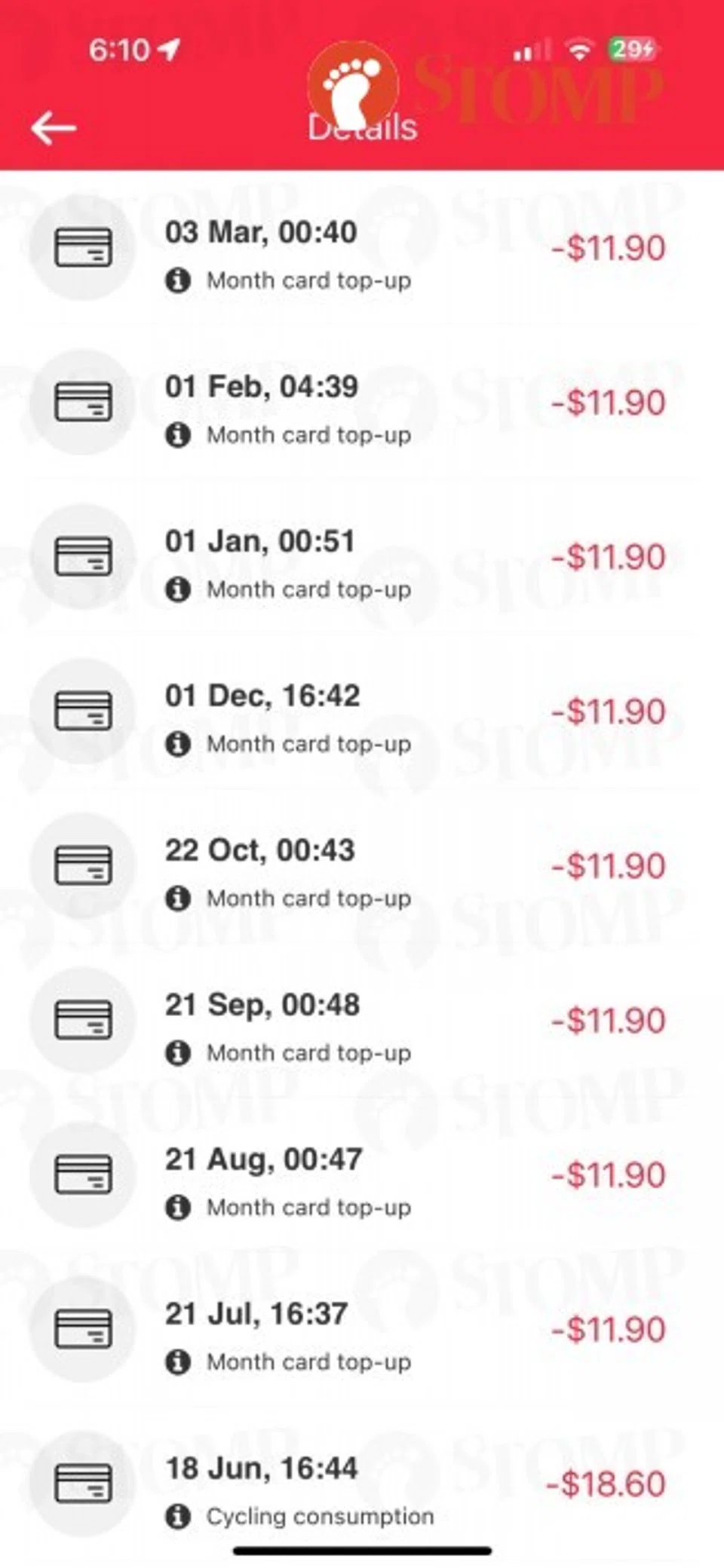 "In March, I was shocked to see that there has been a monthly charge since June 2023," said the Stomper, who shared a screenshot of the charges totalling $107.10.