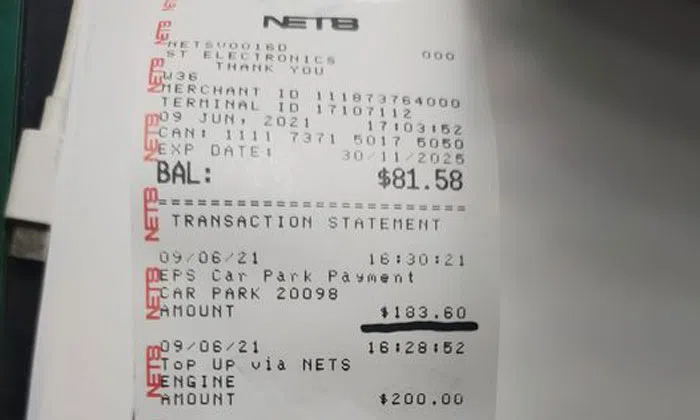 A driver was shocked to find he was charged $183.60 after parking at Engineering Manufacturing Services (EMS) Building at Benoi Road on June 9.