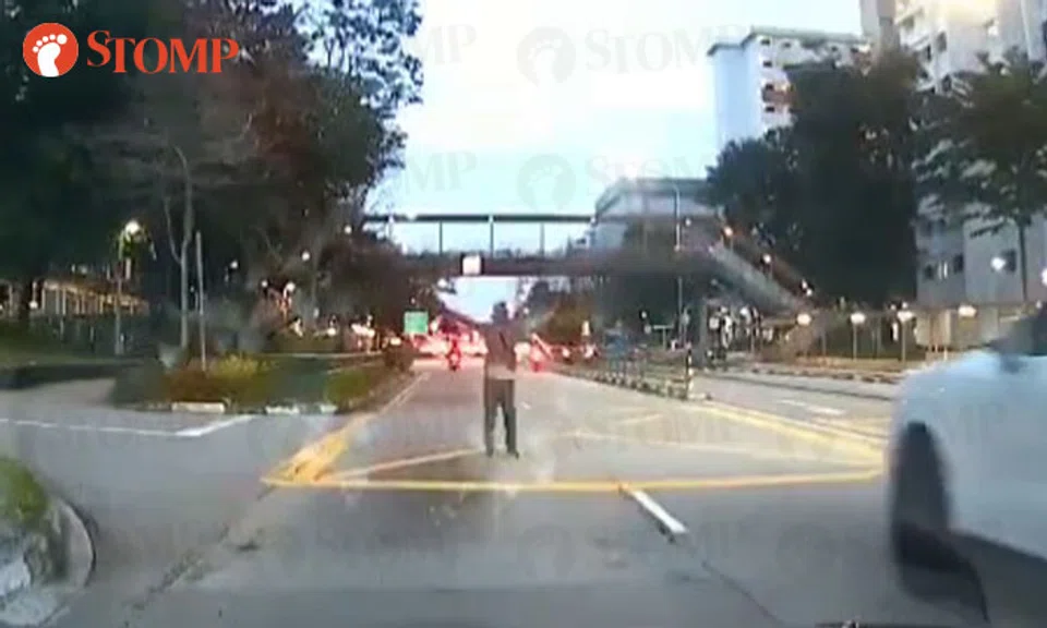 A man was seen staggering onto Bedok North Road and raising his arms at an oncoming car on Jan 22.