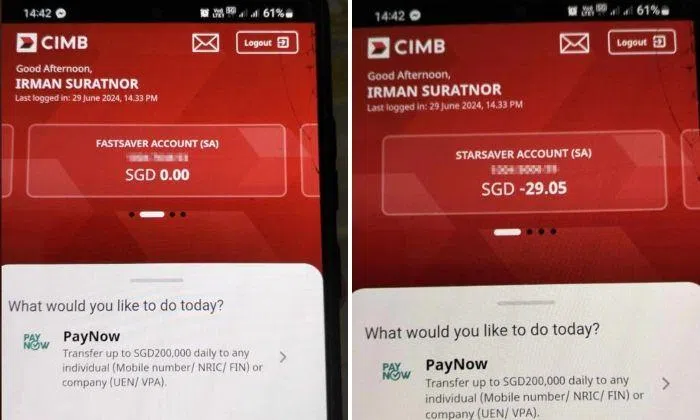 Logistics assistant Irman Suratnor told The Straits Times that he found that two of his savings accounts had zero balances when he checked his bank app at around 12.30pm.