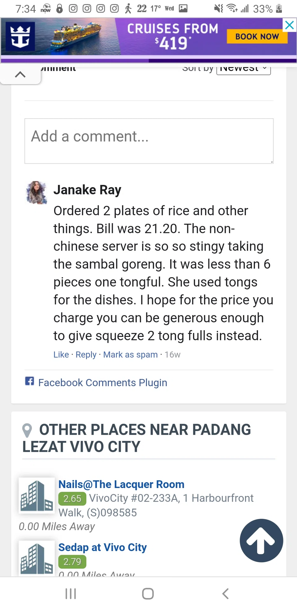 He added that he found other comments online regarding the price of the nasi padang from the same stall.