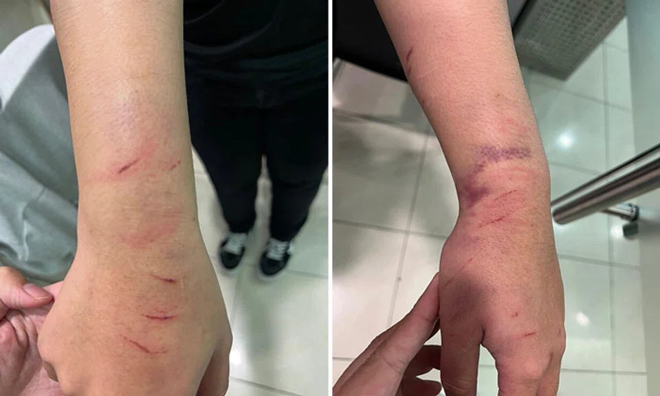The victim sustained abrasions and bruises on her face, lips, arms, shoulders, wrists and left elbow. She was discharged on the same day and given three days of medical leave.