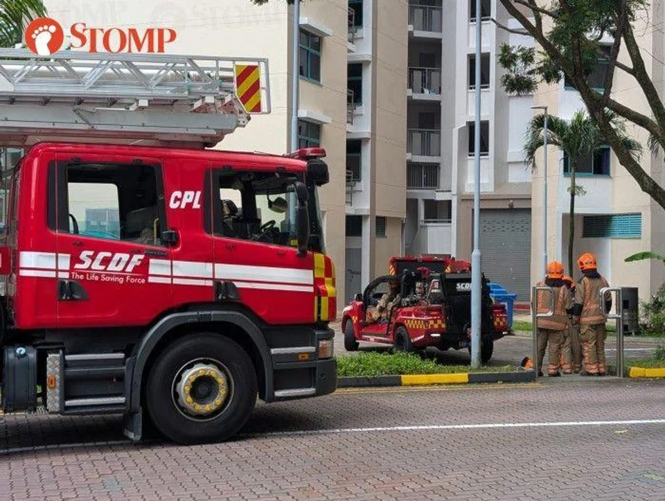 In response to a Stomp query, SCDF said it was alerted to the fire at about 1pm, which was extinguished using a compressed air foam backpack.