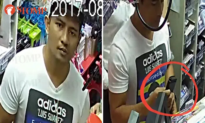 A man was caught on camera removing another customer's wallet from the counter of a retail shop at Esplanade Xchange, at 1.30pm today (Aug 23).