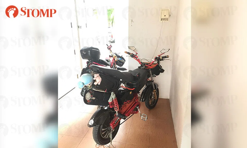 Stomper Frankie came across two e-bikes being plugged into a public power socket at the void deck of Block 816, Jellicoe Road at around 9am on Sunday. (Jan 28)