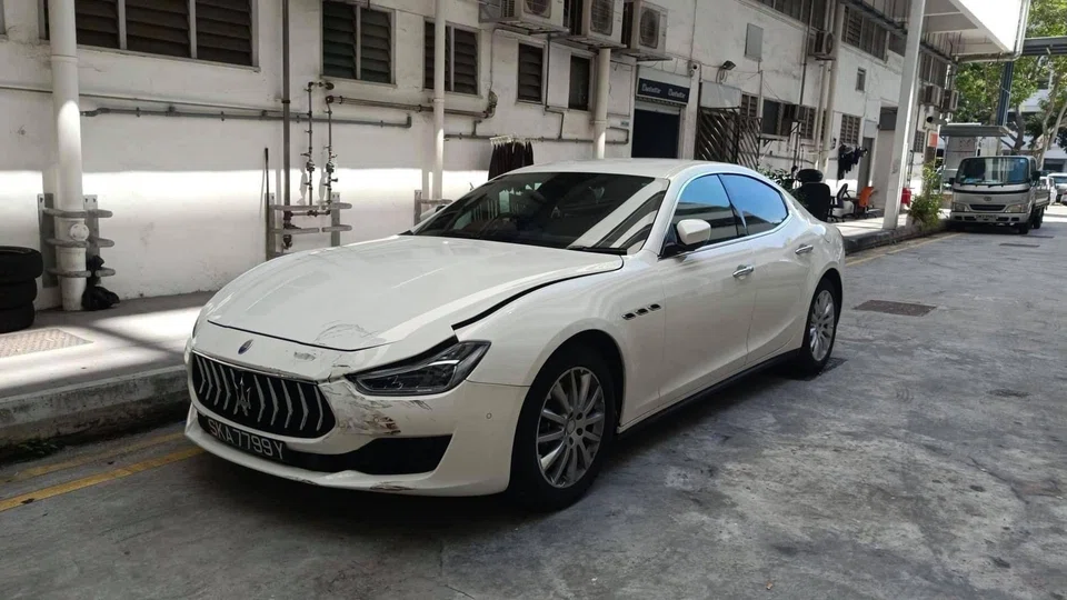 According to a police report posted on SG Road Vigilante's Facebook page, the GrabFood motorcyclist was on his way to do a delivery on Tuesday (Nov 10) at 10.30pm when the Maserati crashed into him, causing the rider to fall on his right side.