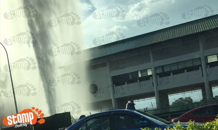 A burst pipe sent water gushing out like a waterfall along the Ayer Rajah Expressway (AYE).