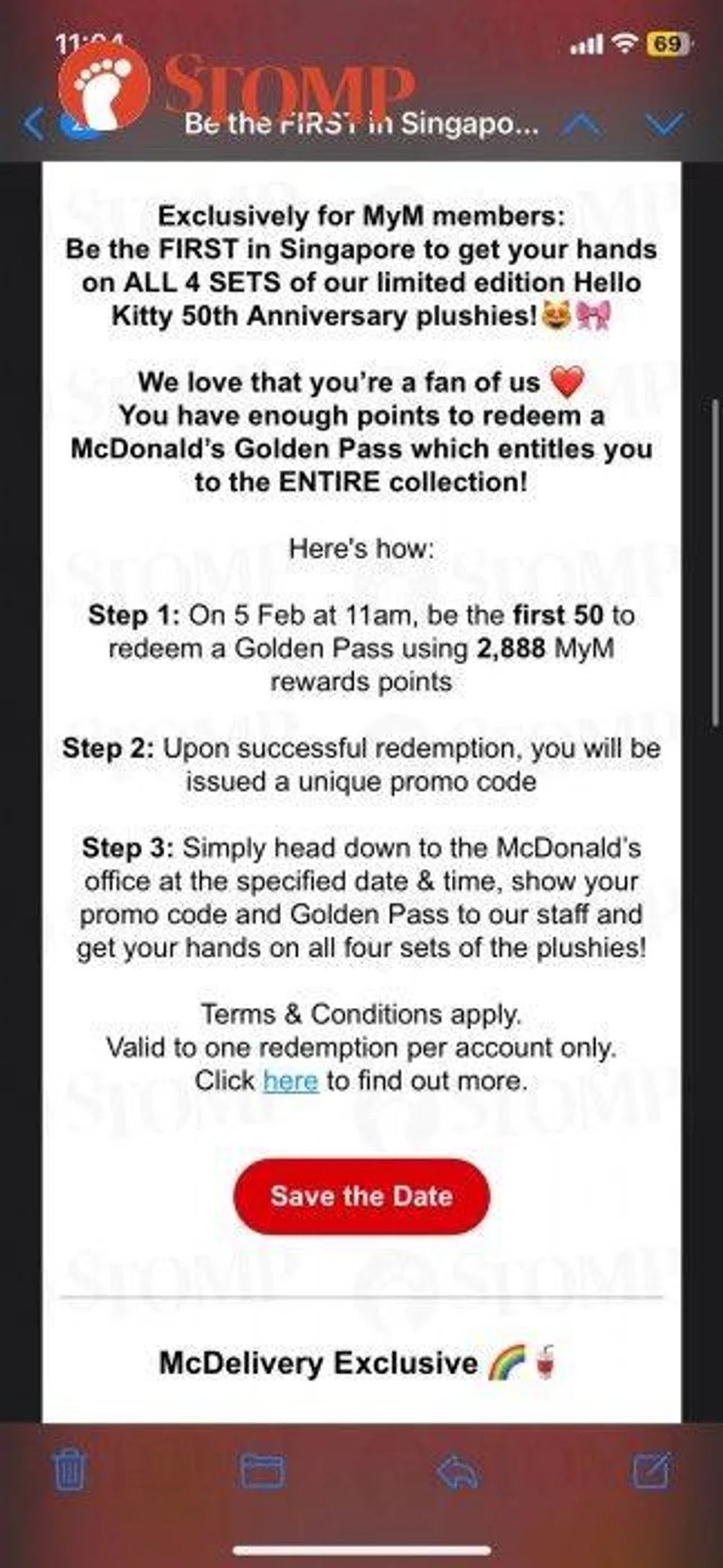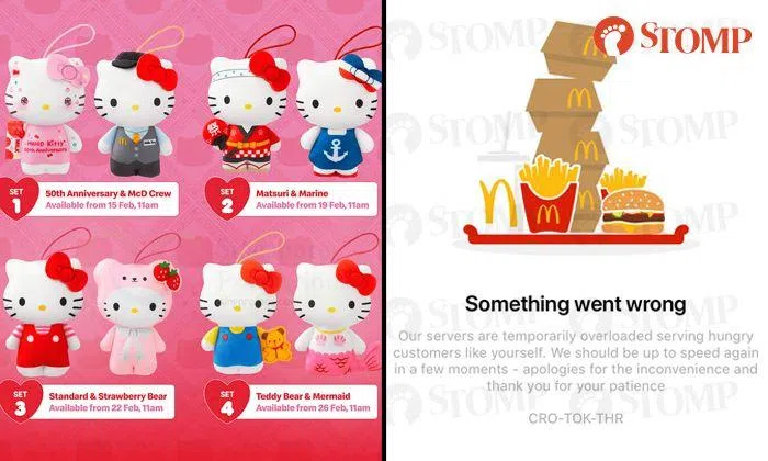 Some fans faced disappointment after they tried and failed to redeem a Golden Pass for limited edition Hello Kitty plushies on the McDonald's app on the morning of Feb 5.