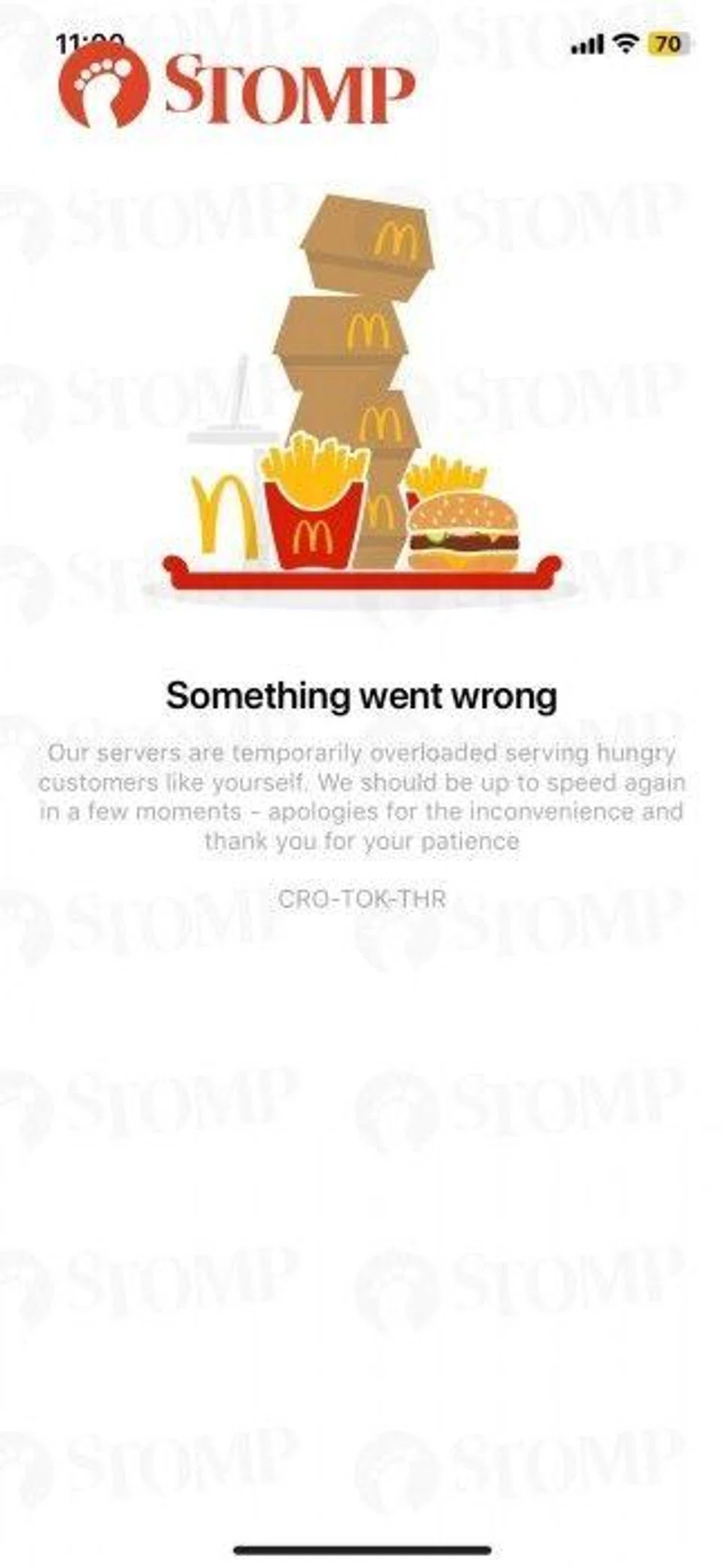 Several Stompers said the McDonald's app was down when they tried to log on at 11am.