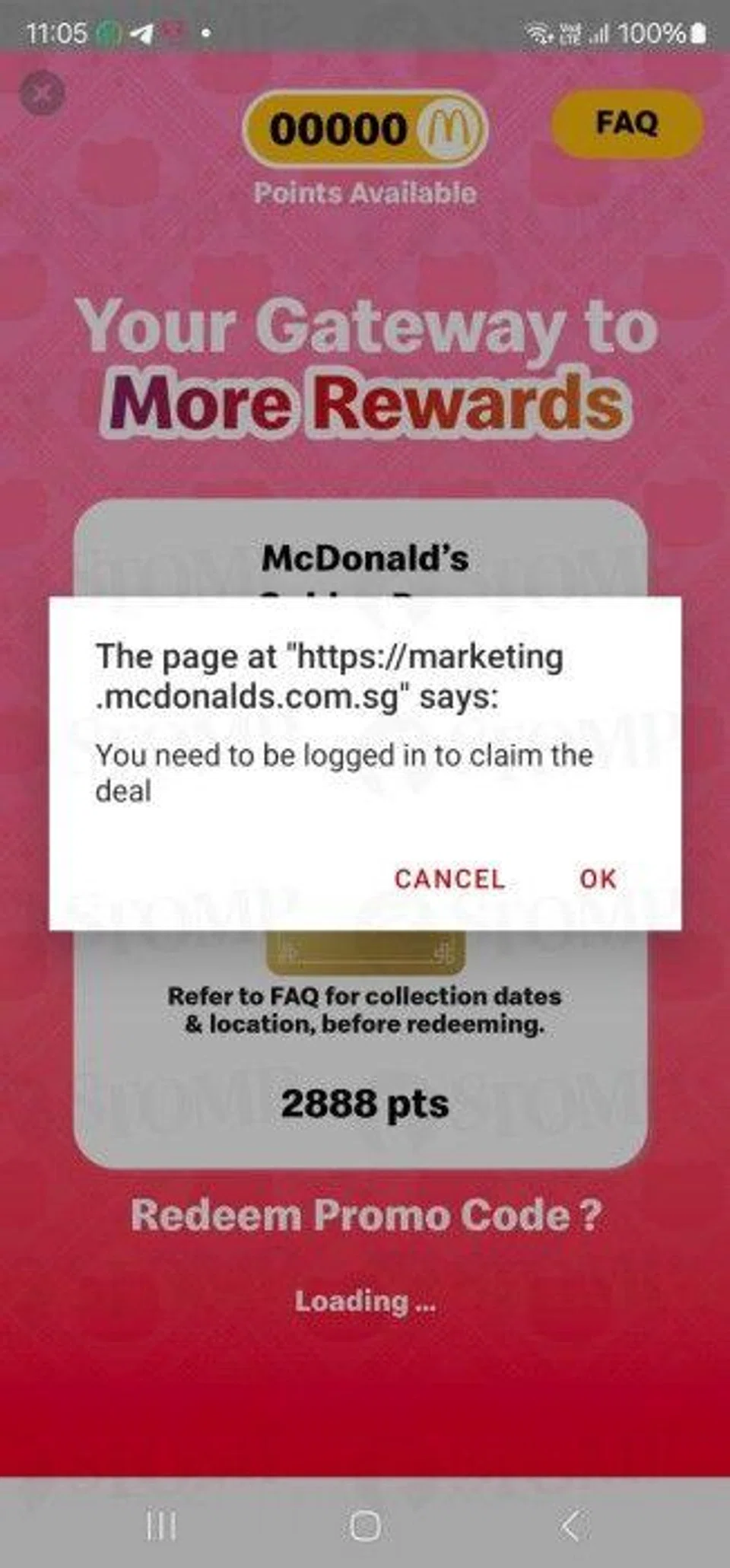 Stomper C said: "I opened the app and refreshed at 11am exactly but no option to redeem appeared. I tried to close and reopen the app, but then it showed the error.