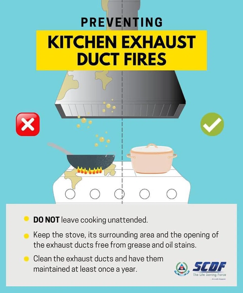 SCDF reminds the public, especially stall holders, on the prevention of kitchen exhaust duct (KED) fires with the following fire safety tips: