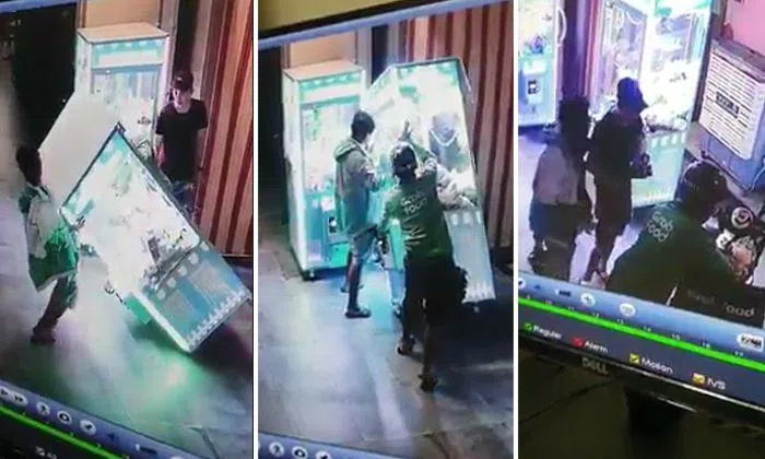 Three men were caught on camera shaking numerous toys out of a claw machine in Clementi during the wee hours of Thursday (Feb 13).