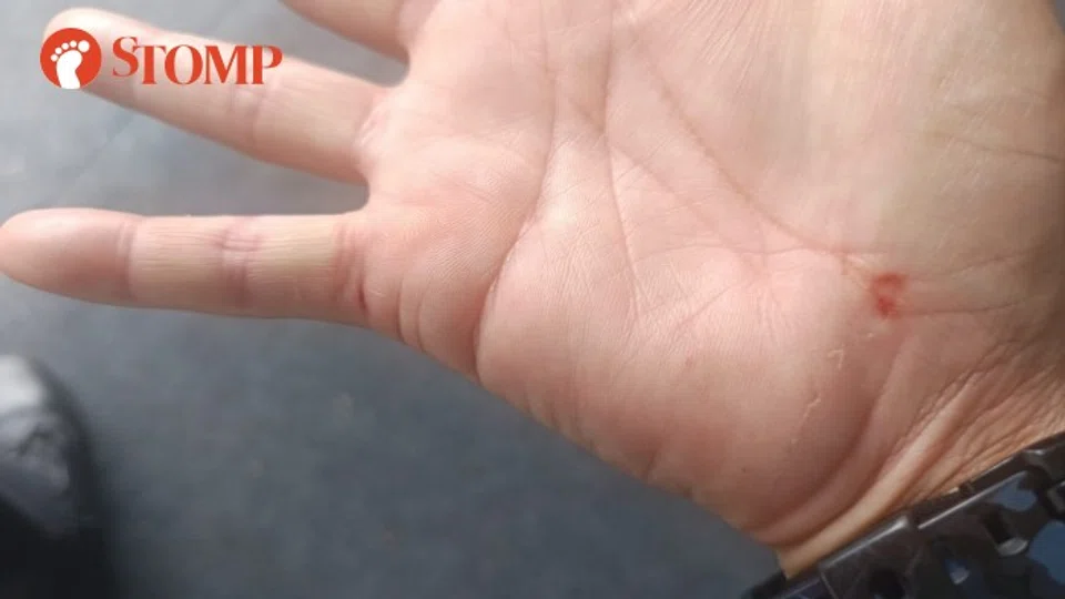 "So he pushed me on the left shoulder and I fell onto the road, injuring my palms. His wife quickly came and apologised to me.