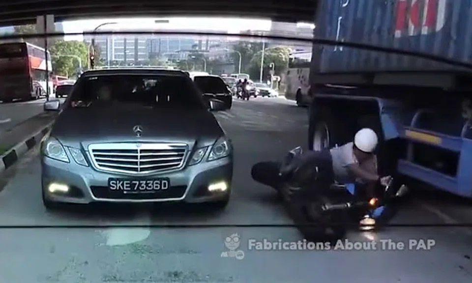 In the video, the Mercedes-Benz driver hits the motorcyclist as they are about to turn to the Ayer Rajah Expressway (AYE).