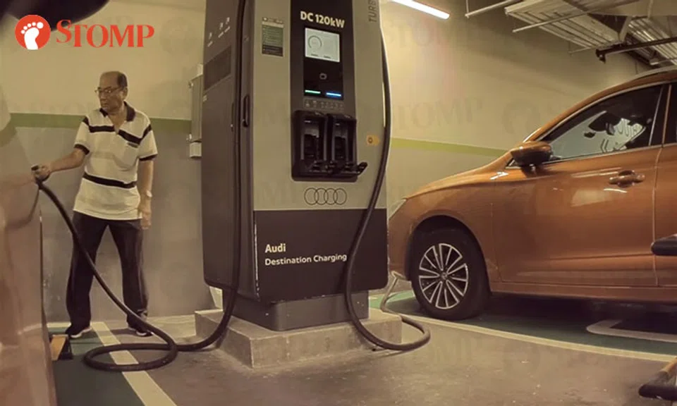 Stomper Angeline shared footage of the incident with Stomp and said her car was parked legally and plugged into a designated charging station at the mall's North Wing B2 carpark.