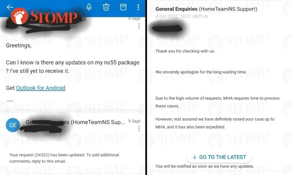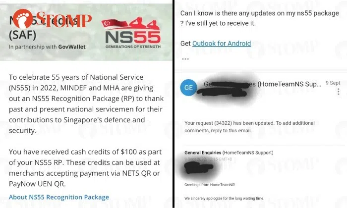 In response to a Stomp query, MHA said: "Since July 2022, the Ministry of Home Affairs has disbursed NS55 credits to the vast majority of Home Team national servicemen who are eligible for the NS55 Recognition Package.