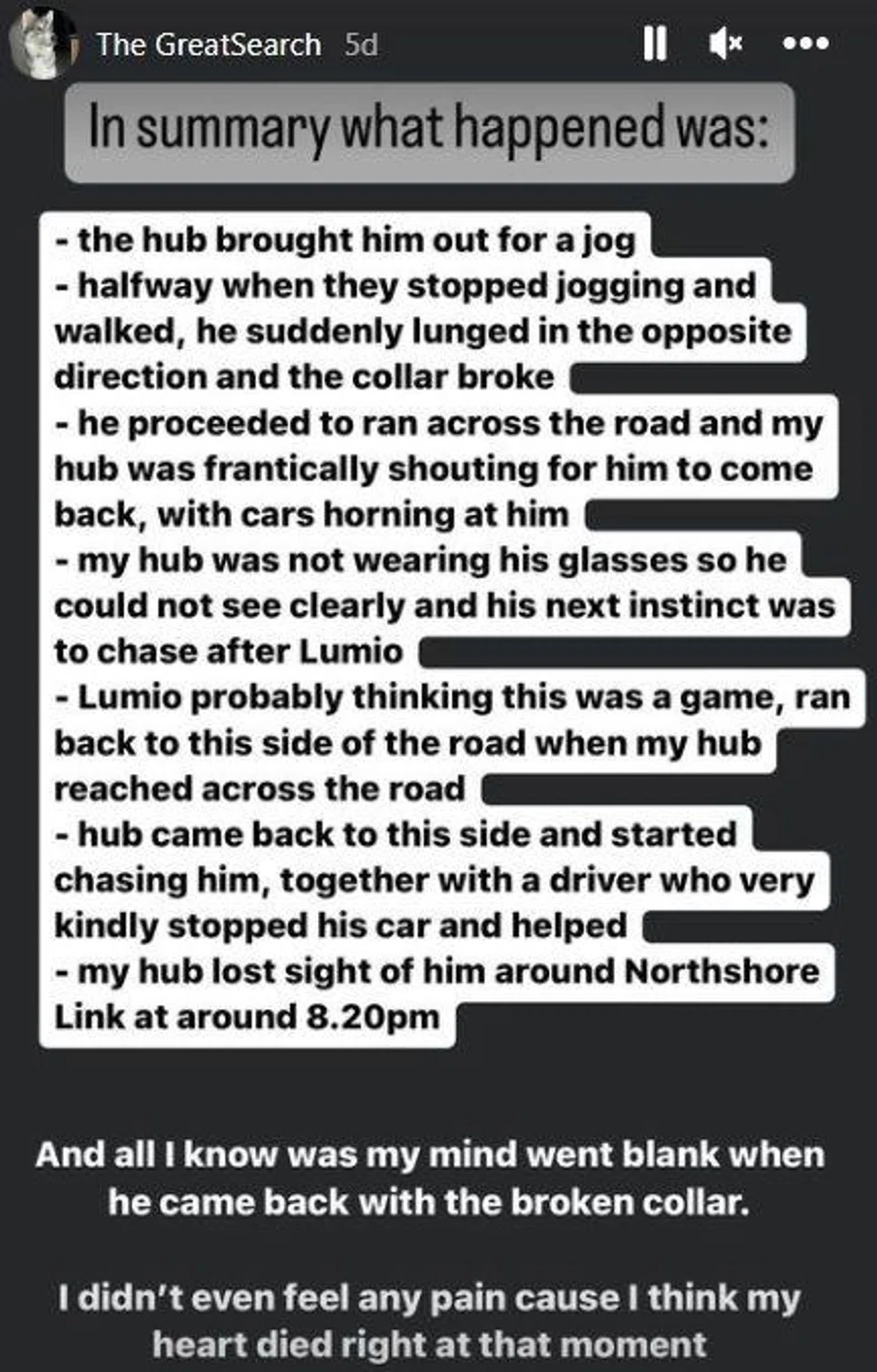 The owner of Lumio had earlier explained on Instagram how they lost the dog.