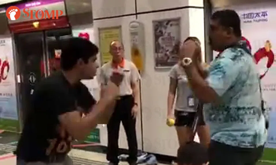 Two men were caught on video throwing punches and shouting at each other at an MRT Station.