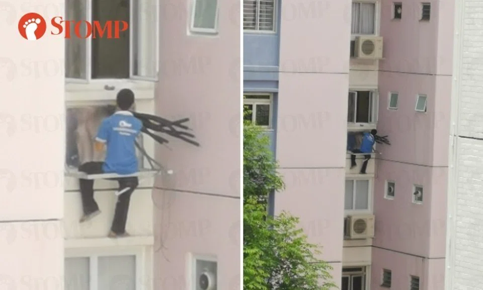 MOM investigating after worker seen sitting dangerously on ledge to install aircon in Woodlands