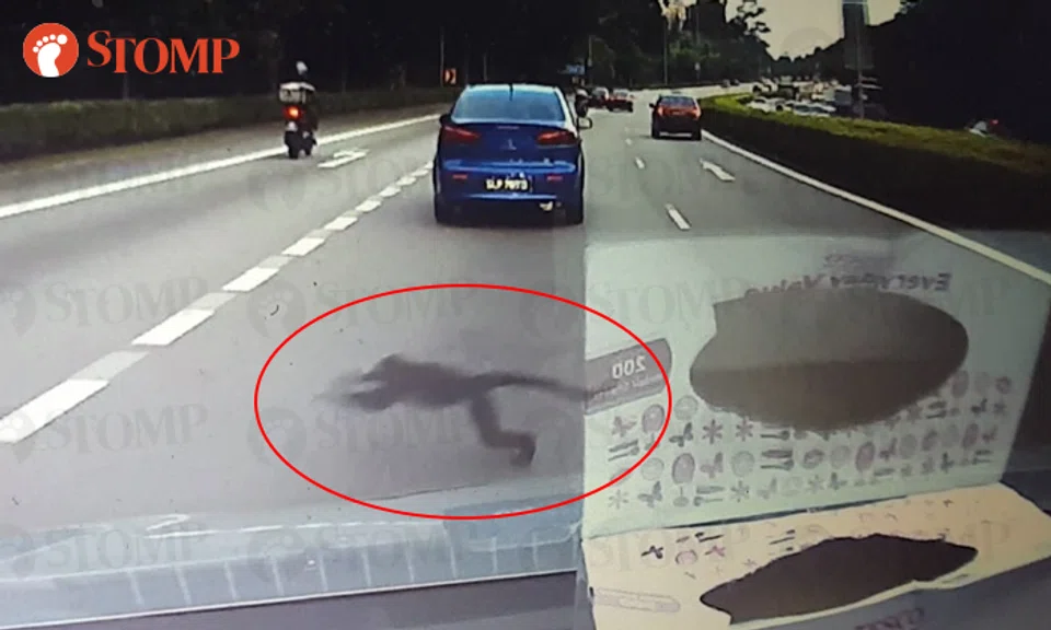 Monkey narrowly escapes fatal accident after dashing out in front of car along PIE