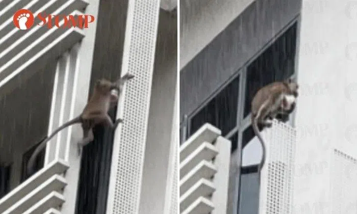Stomper Tim was fascinated when he saw a monkey scale a long railing in a bid to get away after he stole what appeared to be cup noodles at Nanyang Technological University's (NTU) Pioneer Hall.