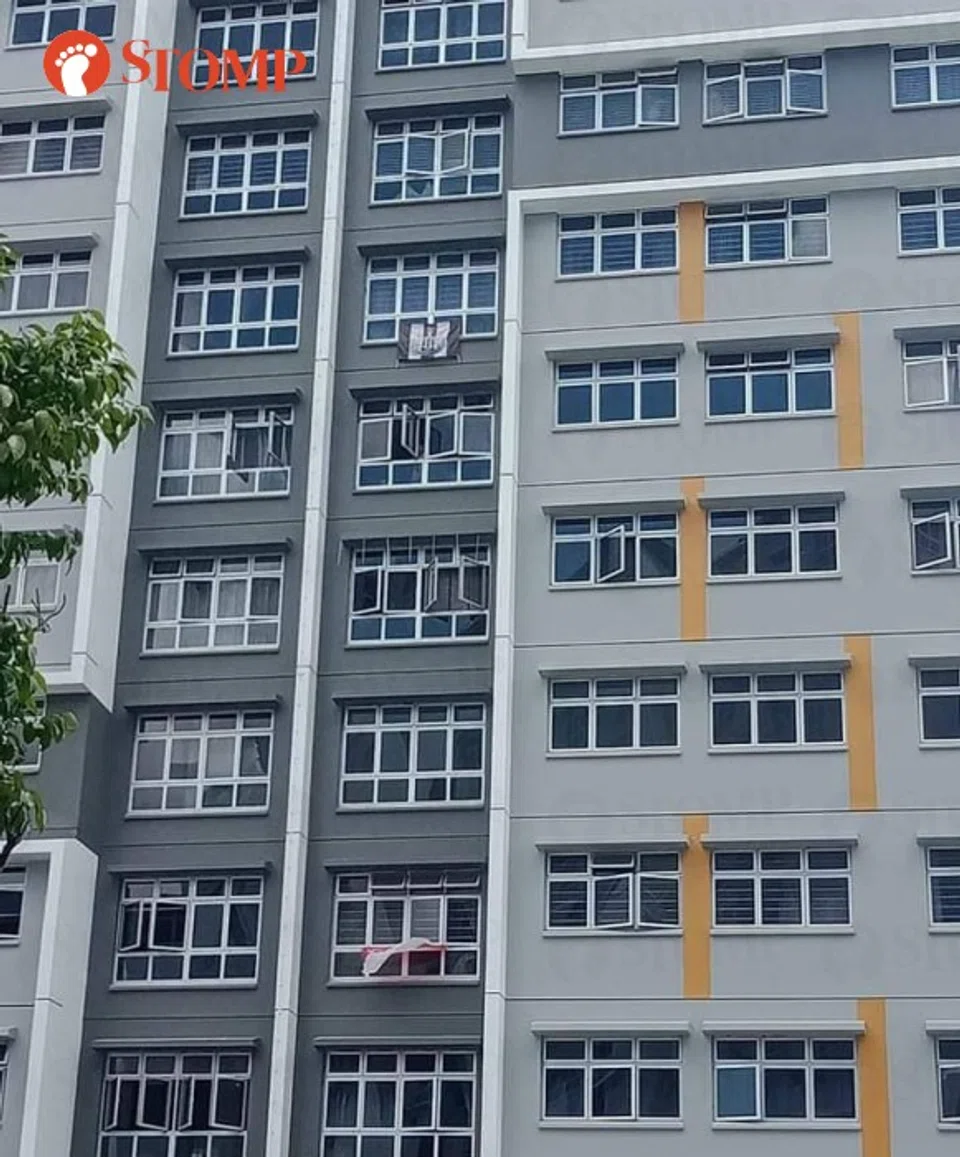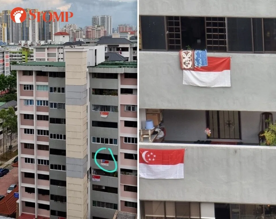 "I spotted this unit in Block 132 Ang Mo Kio Avenue 3 with floor mats, not one but two, hung over our Singapore flag," said the Stomper.