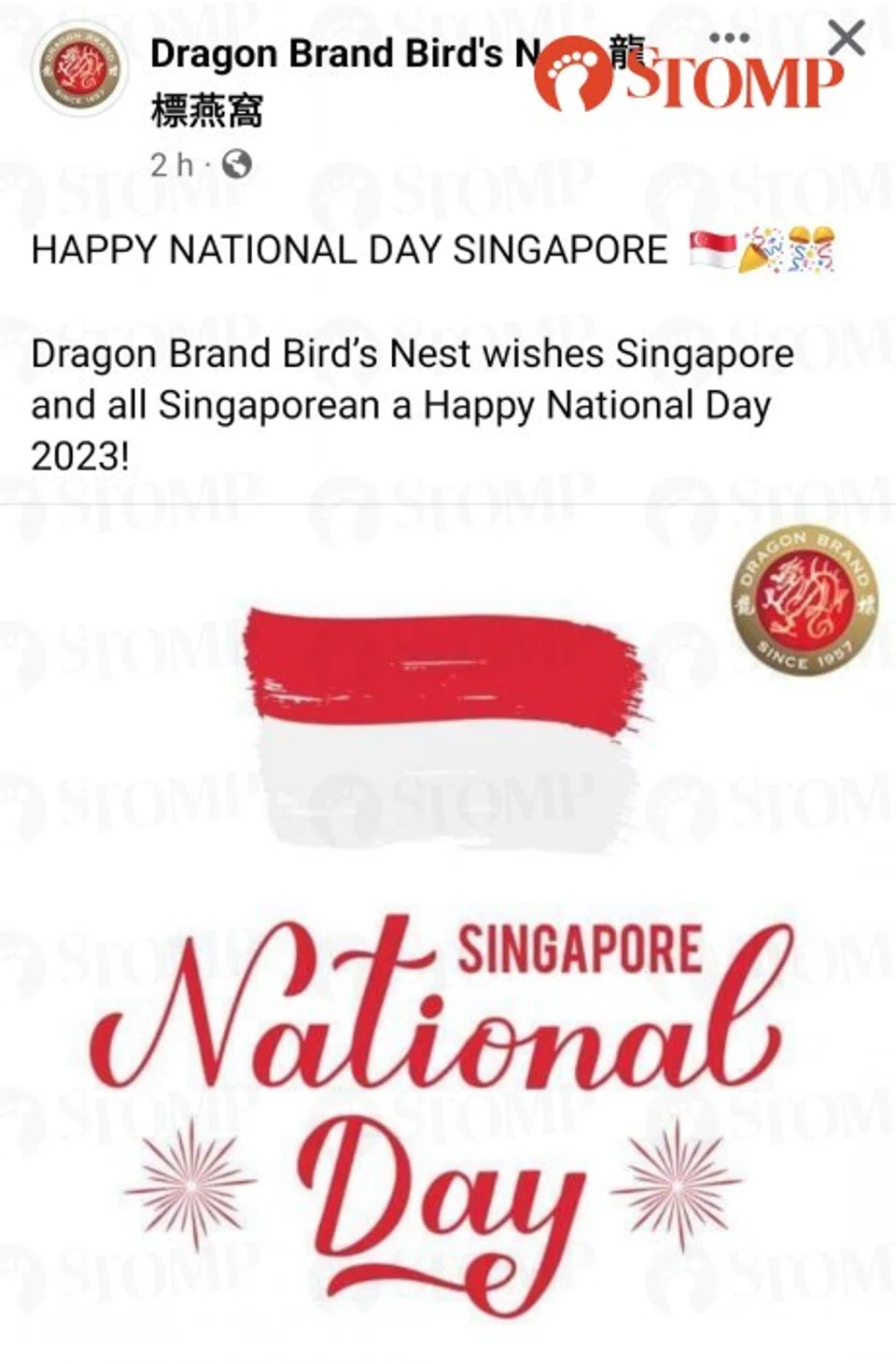Stomper Steven shared a Facebook post by Dragon Brand Bird's Nest on National Day that did just that.