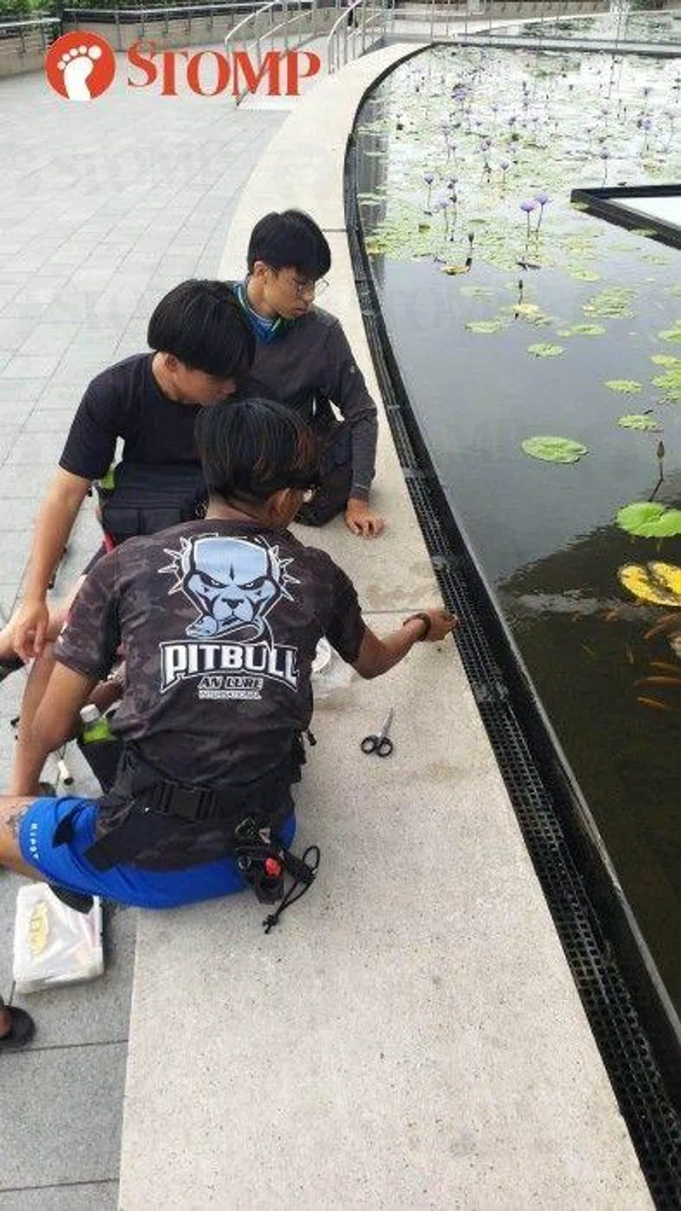 Stomper Noah said he spotted the three youths fishing at the pond outside the Apple Store on Sunday (Apr 9), at around 1.30pm.