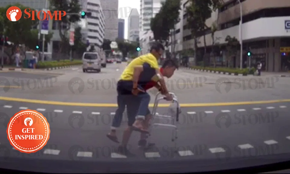 The heartwarming incident occurred at the junction of Waterloo Street and Middle Road at around 10.45am on Friday (May 17), and was caught on camera by Stomper H. Leonardi.