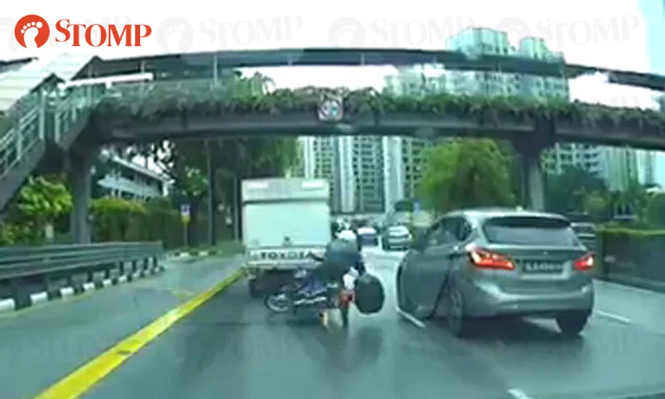 In response to a Stomp query, a police spokesman said the 69-year-old male motorcyclist was conscious when taken to Tan Tock Seng Hospital.