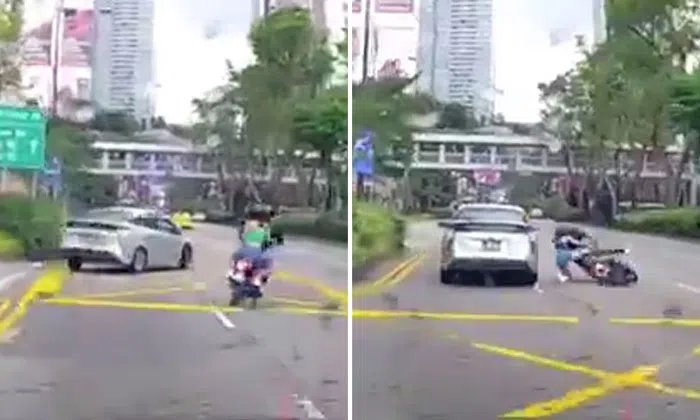 Motorcyclist and pillion rider sent skidding after trying to avoid car near Far East Plaza
