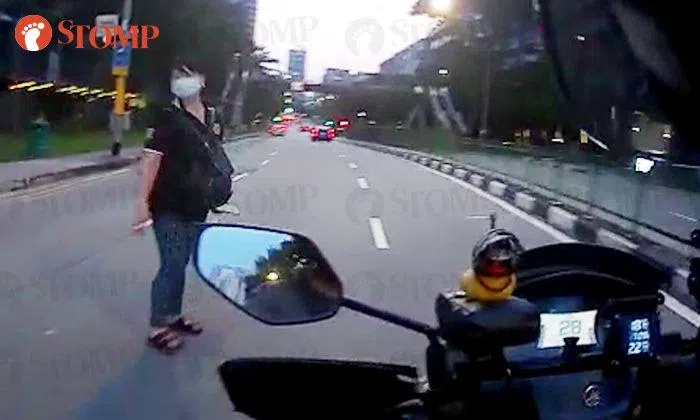 Motorcyclist has close shave with woman who 'anyhow cross road' and 'walk like pasar malan'