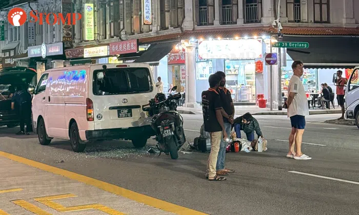 A 41-year-old motorcyclist was taken to hospital after getting into an accident with a van in Geylang on Feb 26.