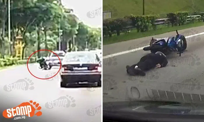 Motorcyclist sent 'flying' off bike after ramming into car that suddenly changed lanes on SLE